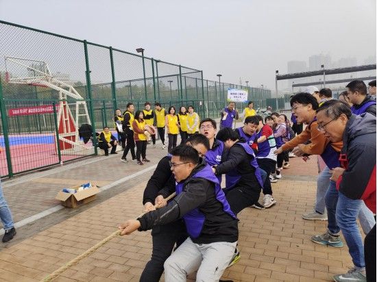 运动会开始,参赛的每一个运动员每一个团队都牵动着在场员工的心弦。陆续进行了协同作战、拔河比赛、一圈到底、定点投篮、五人六足、跳绳等项目。各参赛队展现出奋勇争先、团结协作、敢于拼搏的运动精神。大家同呼吸,共命运。彼此加油、欢呼、喝彩。现场欢声笑语此起彼伏,真实体现了大家极大的澎湃激情。