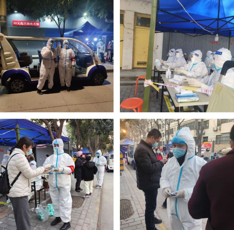 为及时有效发现和控制传染源,阻断疫情传播,我公司所在的咸阳市秦都区果断开展全员核酸检测筛查工作,以社区为单位全面推进。由于待检人员较多,防控压力大,渭阳西路街道办事处秦宝社区特向我公司征集志愿者,我单位陈增乐、张茜、寇一博三位同志积极响应,主动下沉防疫一线,从12月22号13点40分到19点,三位志愿者身穿防护服,协助进行核酸采样工作,主动为群众答疑解惑,引导群众间隔一米排队、维持秩序、发放疫情防控检测卡片等等,配合秦宝社区顺利完成核酸采集任务,三位同志在疫情形势紧张的当下勇于担当,敢为人先,是扎实推进党史学习教育,深入践行“我为群众办实事”活动的生动体现,是最美的逆行者。
