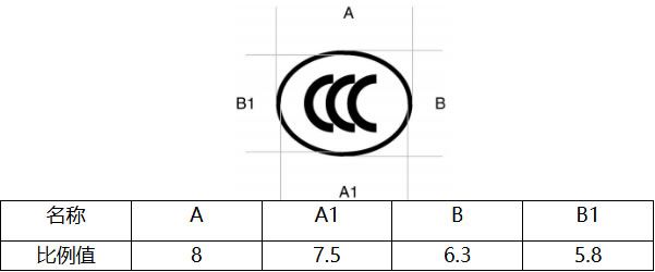 ① CCC标志椭圆形,长短轴直径比为8:6.3,具体数字如下: