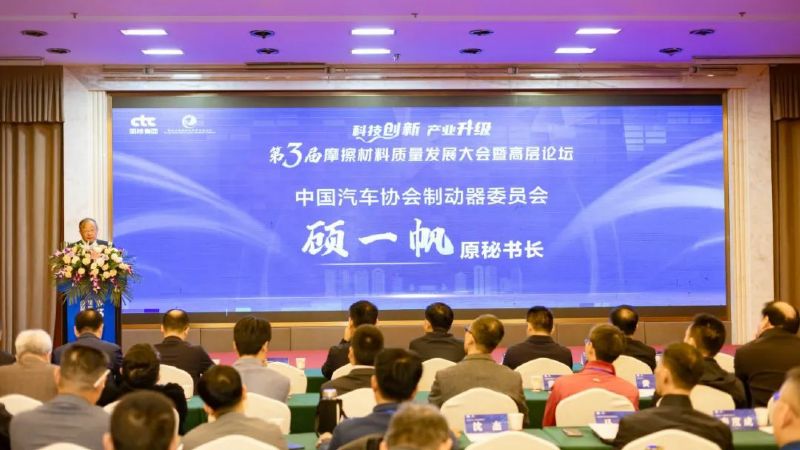 中国汽车工业协会制动器委员会荣誉秘书长顾一帆致辞。顾一帆代表汽车制动衬片用户对大会的召开表示祝贺,对我国汽车进入欧美高端市场、制动系统达到客户要求做出的贡献表示衷心的感谢,通报了汽车制动器行业相关产能和技术变革情况;希望摩擦材料行业进一步增强使命感和责任感,不断突破技术瓶颈,开辟新赛道,实现新跨越;期待枣阳市加快推进高水平科技自立自强,进一步做实做优做强经济实体,延链强链,打造摩擦材料国家示范基地。