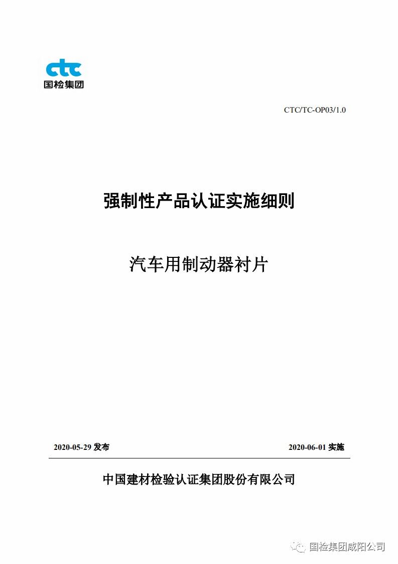 近日,汽车用制动器衬片强制性产品认证实施细则正式发布!