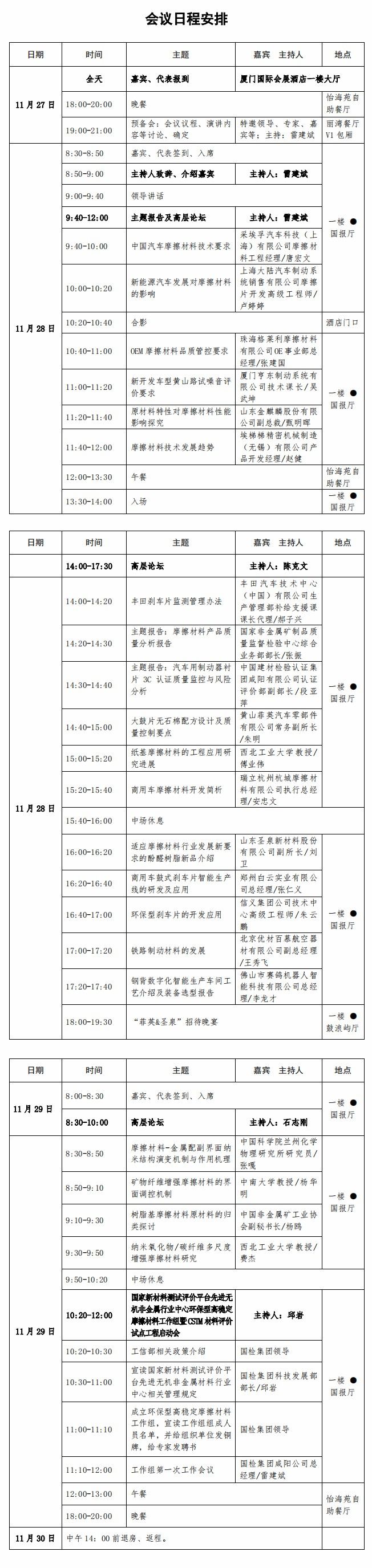 首届摩擦材料质量发展大会暨高层论坛会议安排