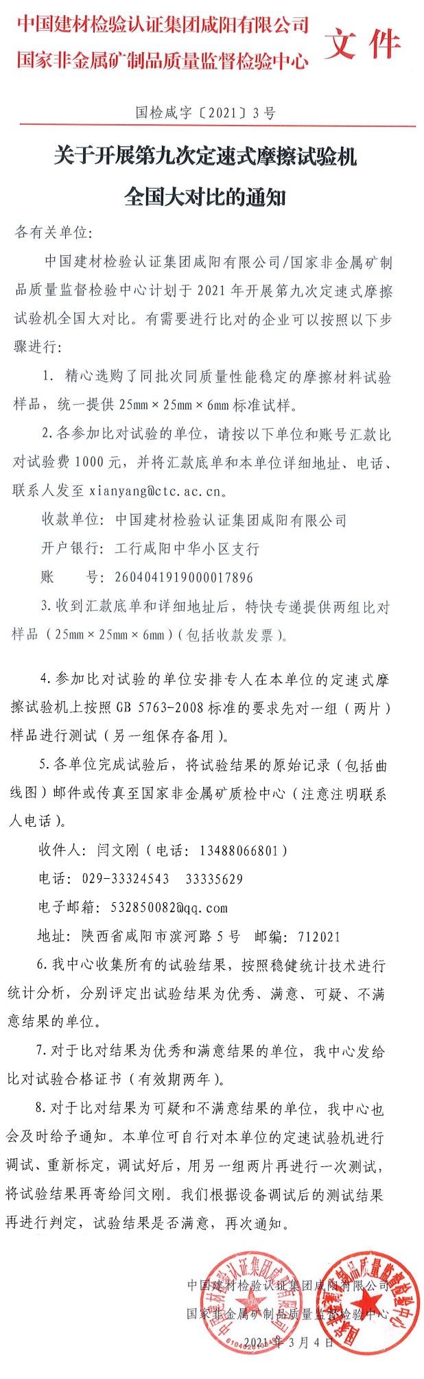关于开展第九次定速摩擦试验机全国比对的通知