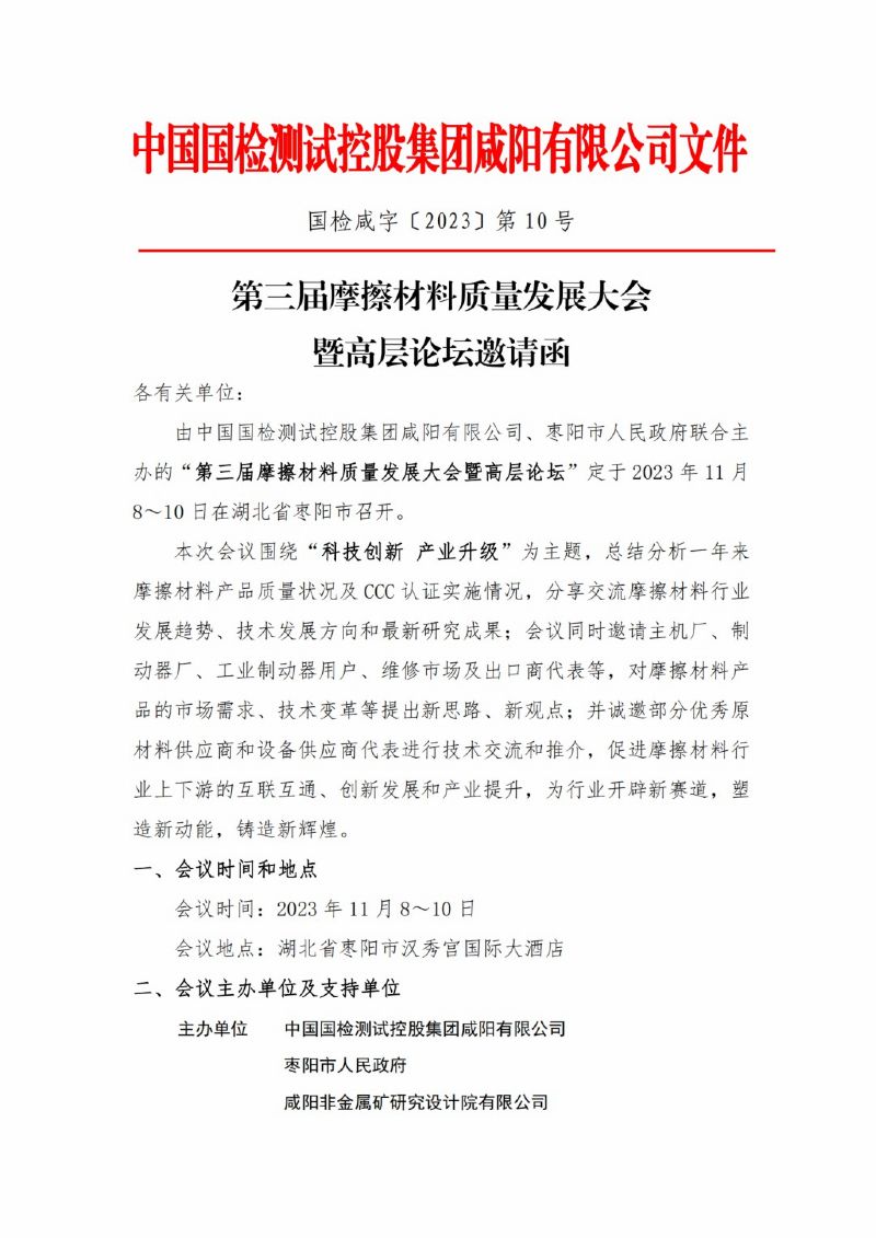 第三届摩擦材料质量发展大会暨高层论坛邀请函