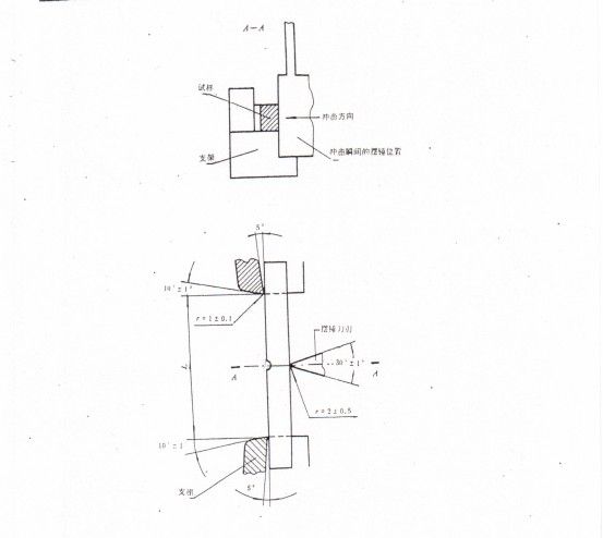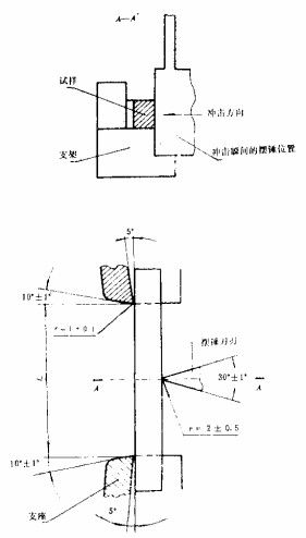 2。按下样品图5放置在试验机支架上,使缺口的背面承受冲击载荷。冲击刀片应撞击样品的整个宽度,并与样品的中心线对齐。