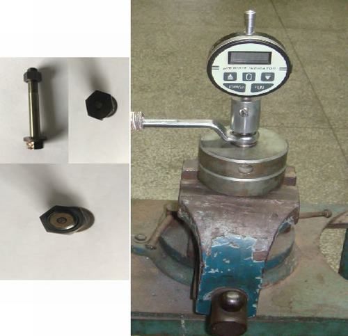 3。5用扳手连续均匀地拧紧螺母,并通过样品施加载荷,直到达到与样品要求的载荷相对应的百分表读数。Do,记录此读数,以及负载连续施加到最大值的时间3秒。垫片材料的压缩载荷26.7KN,相应的螺栓伸长率应由校准后的每个加载螺栓的载荷-变形曲线确定。